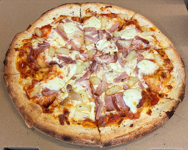 A Hawaiian pizza inspired by lunar craters, with pineapple